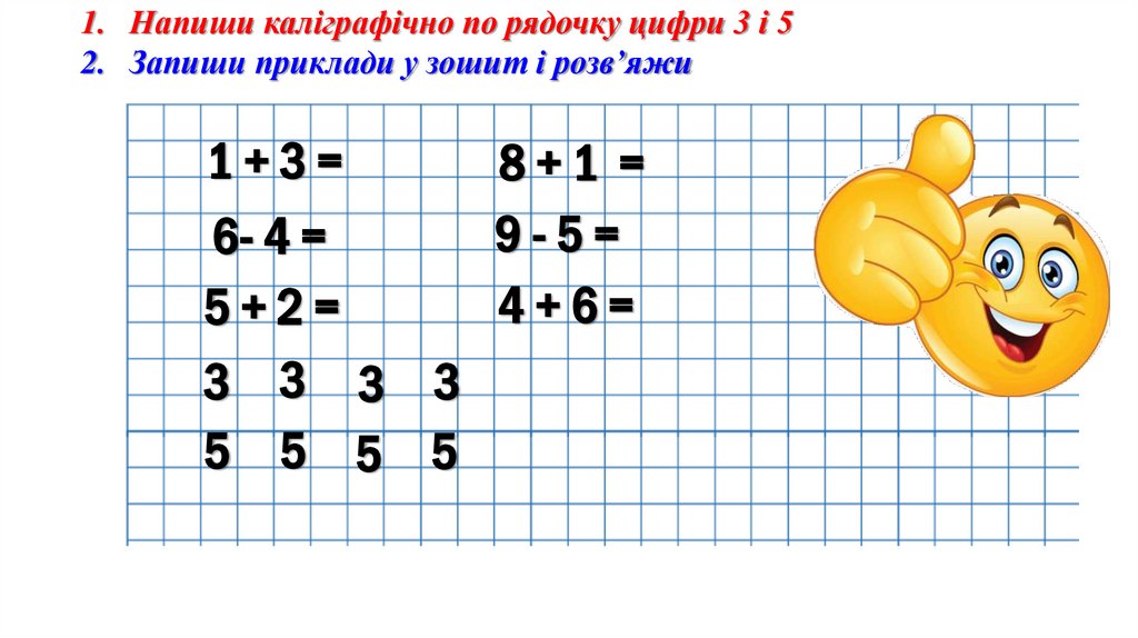 1. Напиши каліграфічно по рядочку цифри 3 і 5