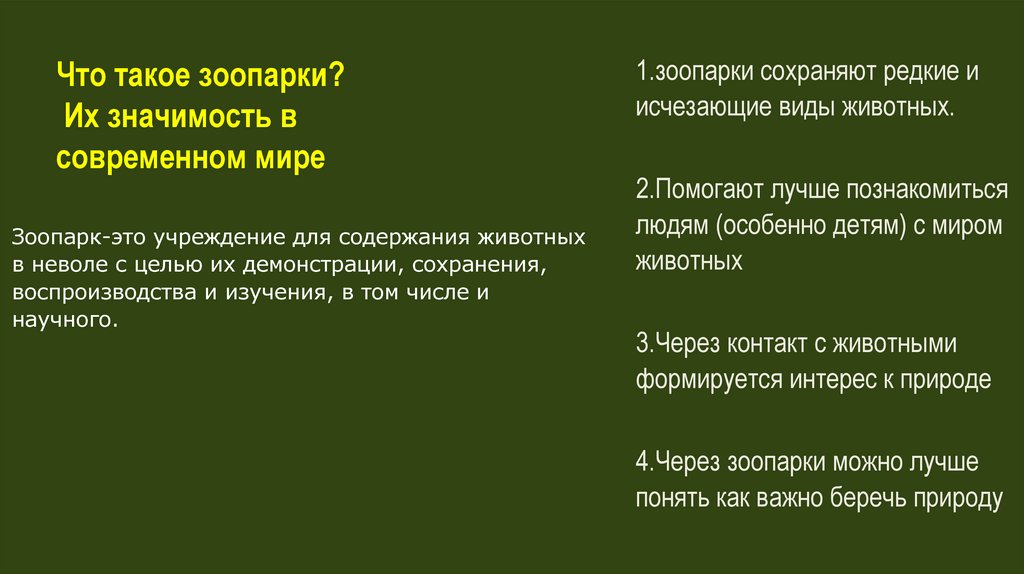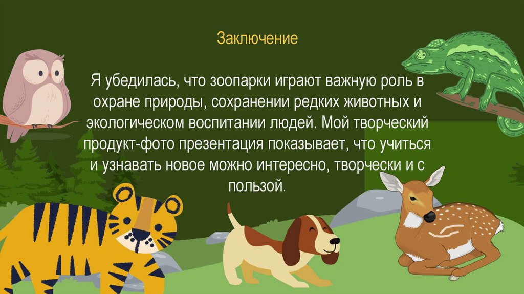 ЗаключениеЯ убедилась, что зоопарки играют важную роль в