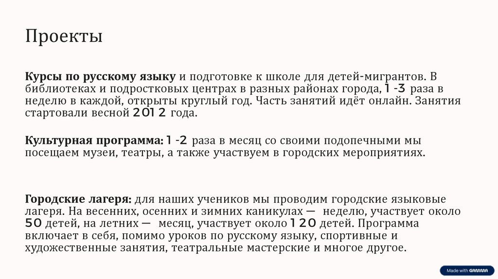 ПроектыКурсы по русскому языку и подготовке к школе для детей-мигрантов. В