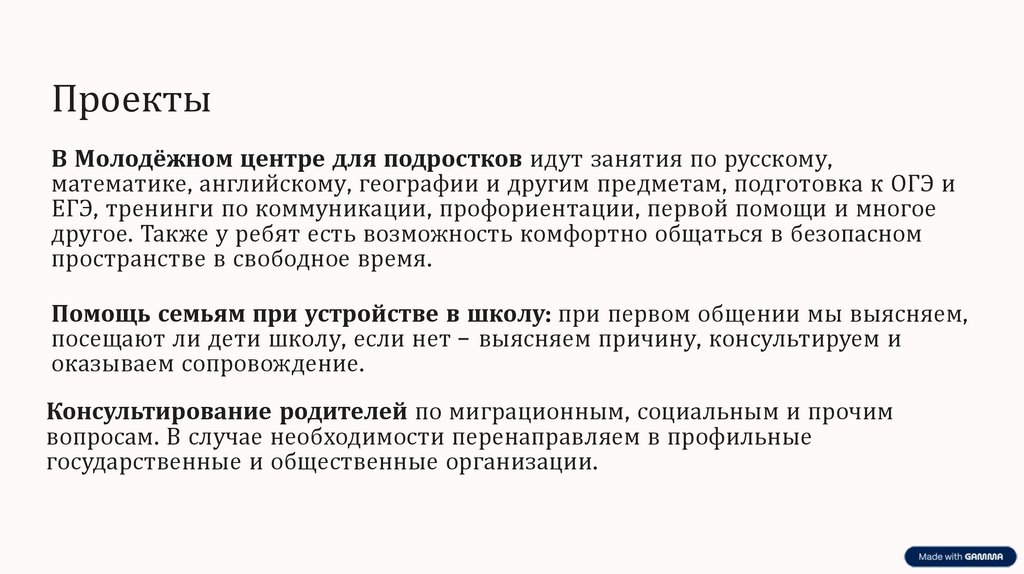 ПроектыВ Молодёжном центре для подростков идут занятия по русскому,