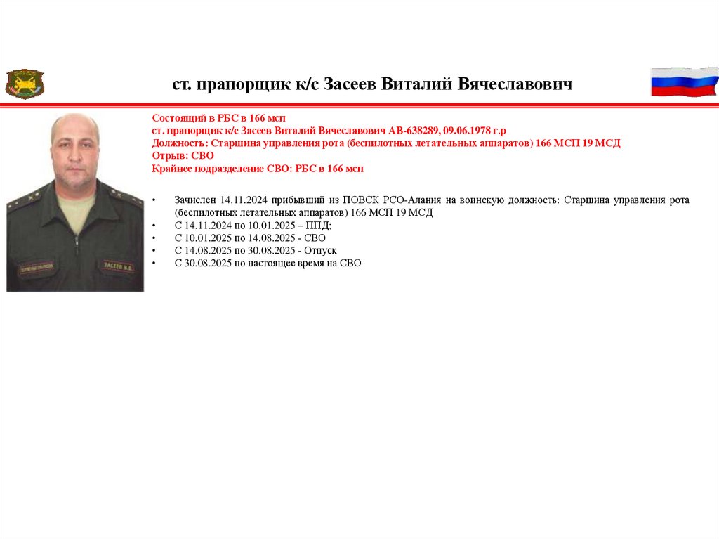 ст. прапорщик к/c Засеев Виталий ВячеславовичСостоящий в РБС в 166 мсп