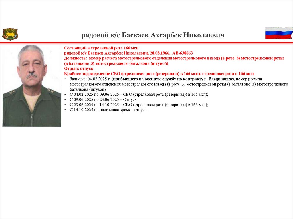 рядовой к/c Баскаев Ахсарбек НиколаевичСостоящий в стрелковой роте 166 мсп