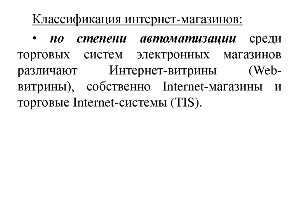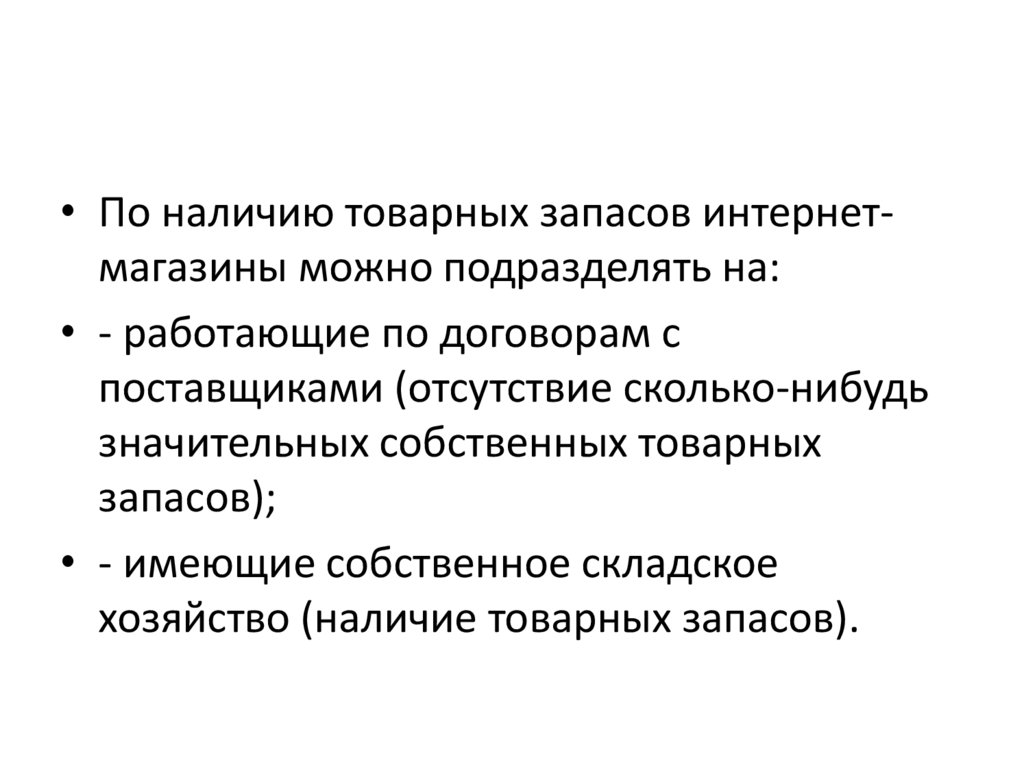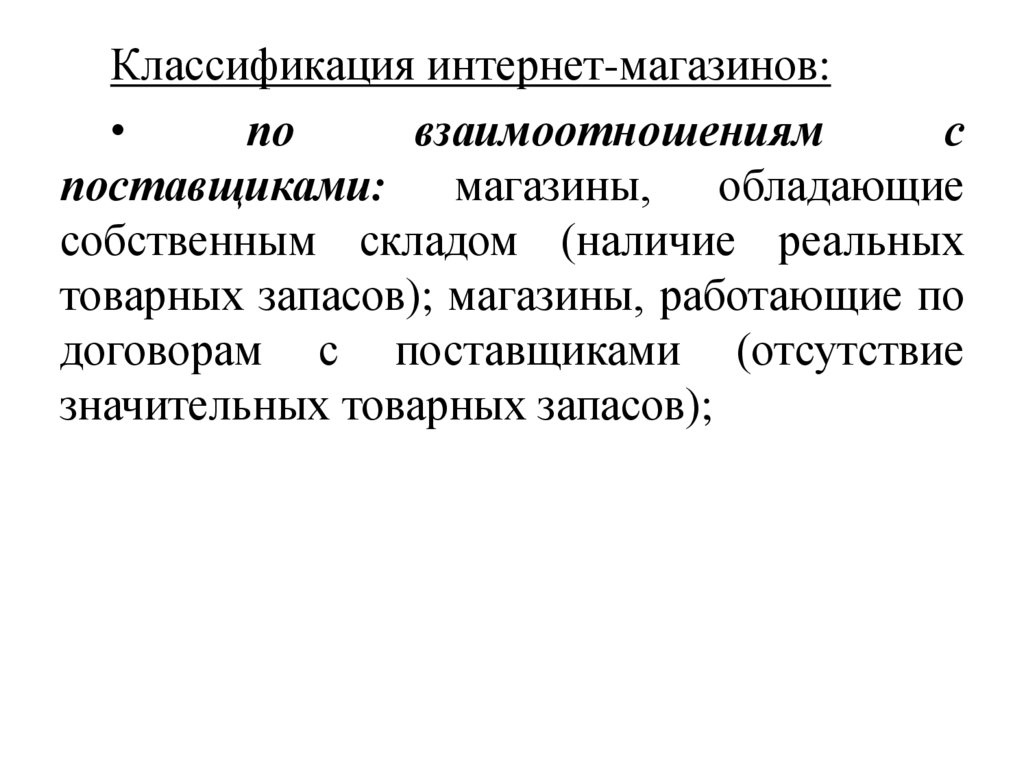 • Существенно отличает друг от друга варианты построения интернетмагазинов используемая модель бизнеса:• - онлайновый магазин (отсутствует традиционная торговая сеть);