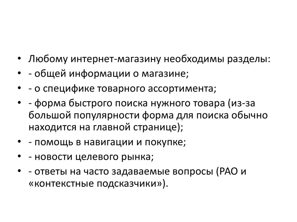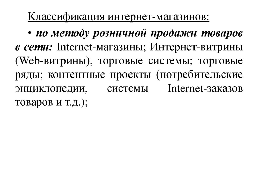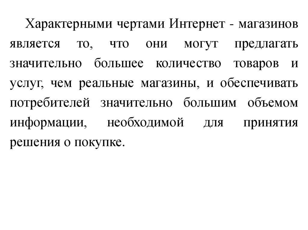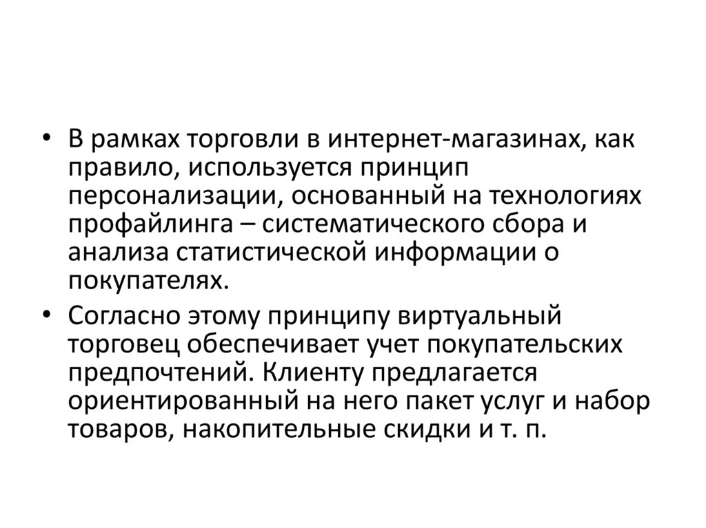 • В рамках торговли в интернет-магазинах, какправило, используется принцип