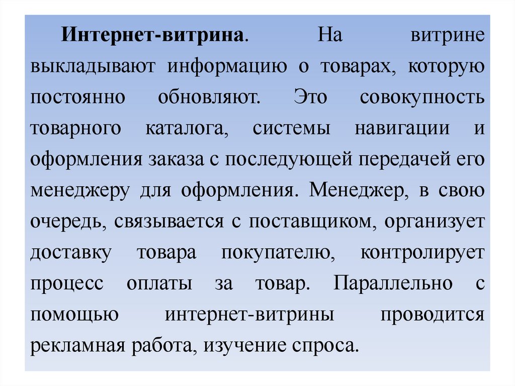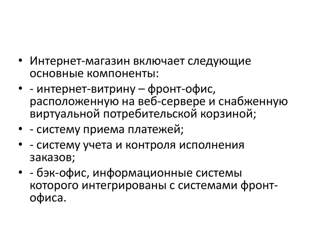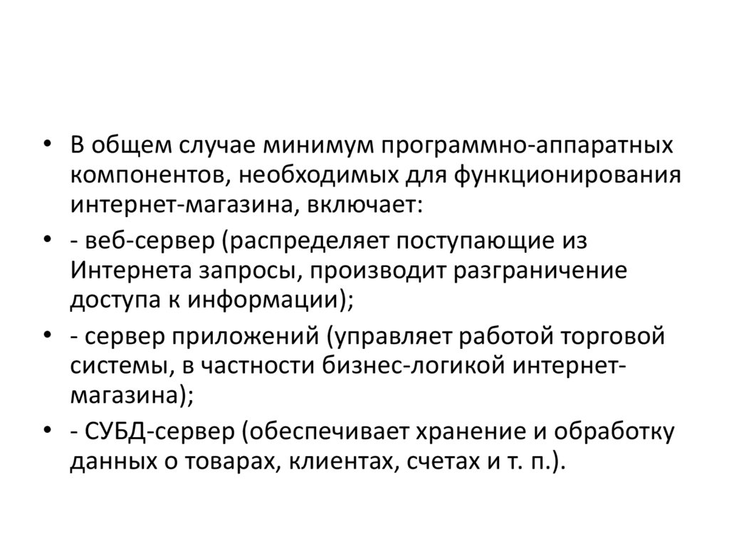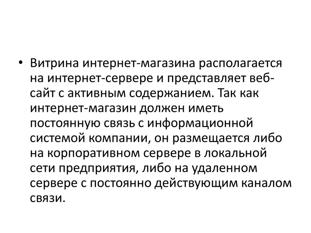• Витрина интернет-магазина располагаетсяна интернет-сервере и представляет вебсайт с активным содержанием. Так как