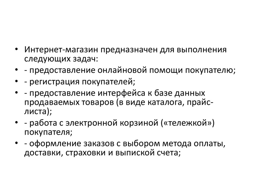 • Интернет-магазин предназначен для выполненияследующих задач: