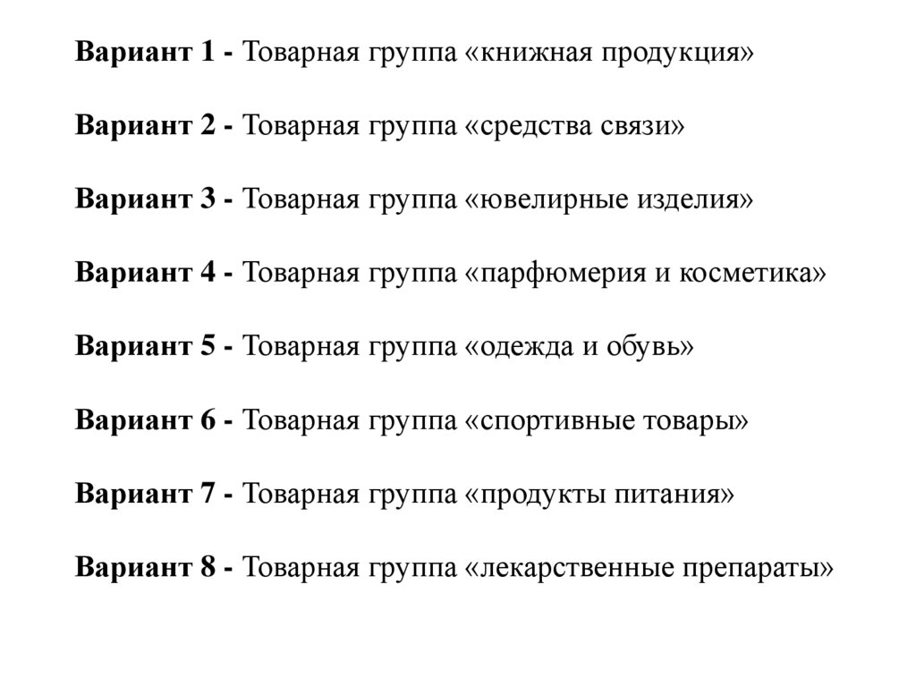 Вариант 1 - Товарная группа «книжная продукция»Вариант 2 - Товарная группа «средства связи»