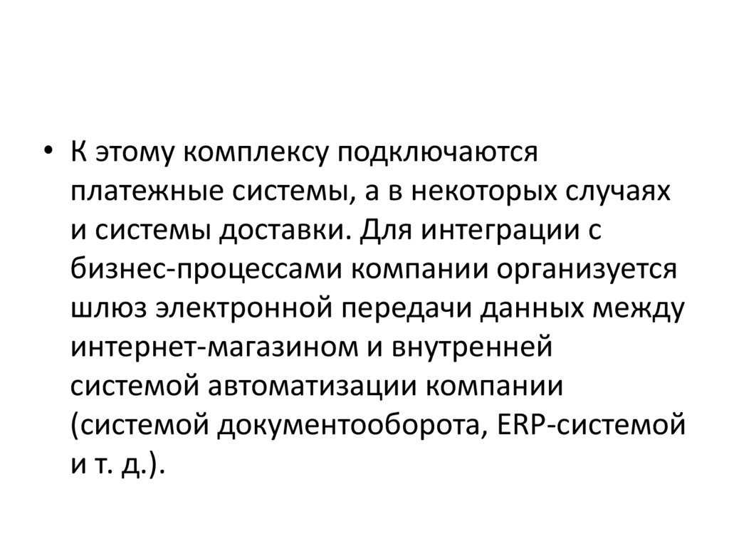 • К этому комплексу подключаютсяплатежные системы, а в некоторых случаях