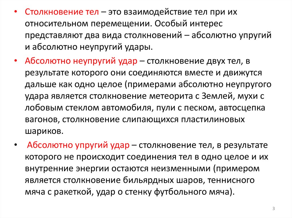 • Столкновение тел – это взаимодействие тел при ихотносительном перемещении. Особый интерес