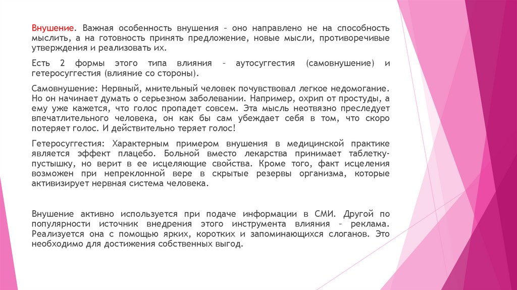 влиянию — это сопротивление воздействию внушения. Основные инструменты влияния при