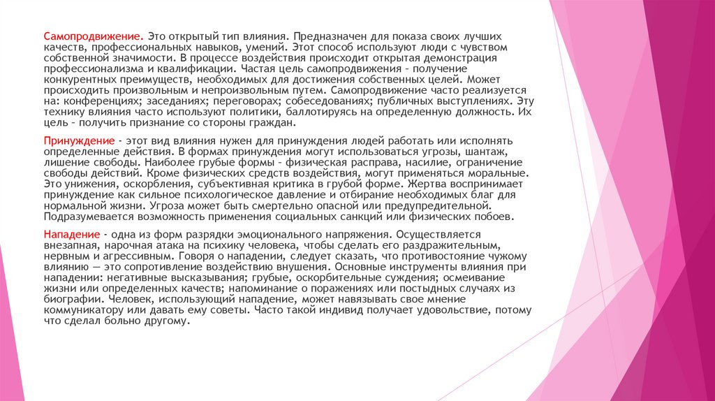 собственной значимости. В процессе воздействия происходит открытая демонстрация