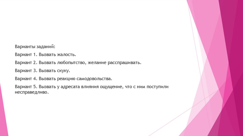 Вариант 5. Вызвать у адресата влияния ощущение, что с ним поступили