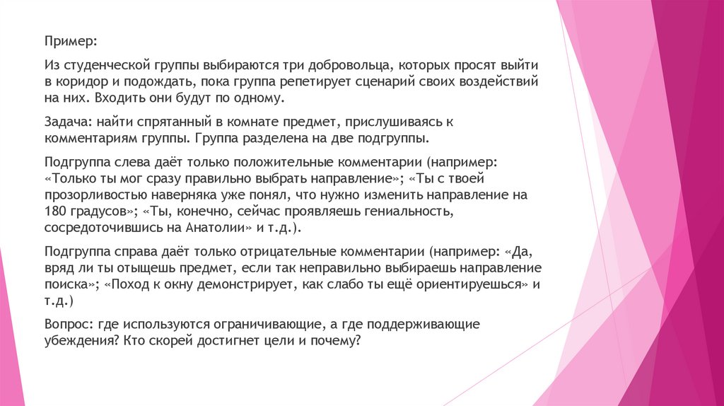 убеждение было внедрено удачно, то индивид примет и в дальнейшем будет руководствоваться
