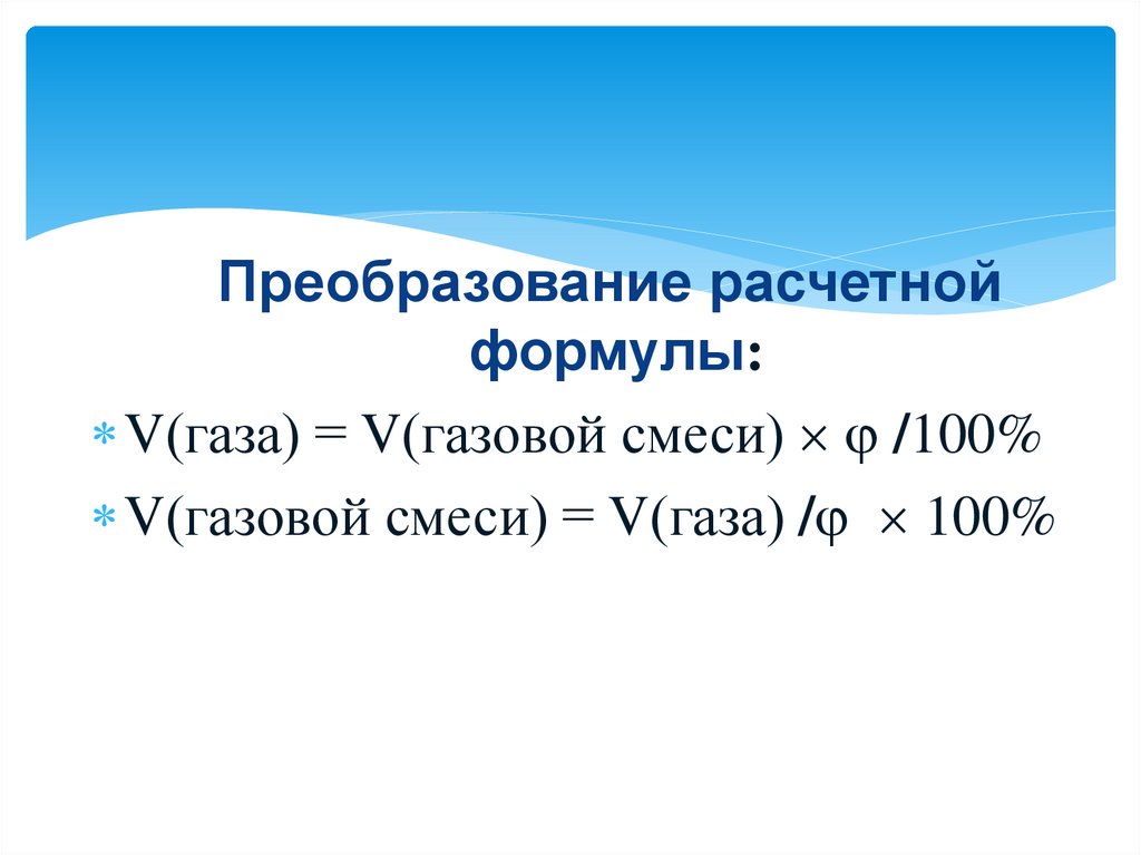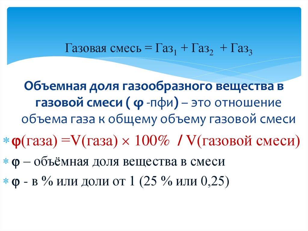 Газовая смесь = Газ1 + Газ2 + Газ3Объемная доля газообразного вещества в