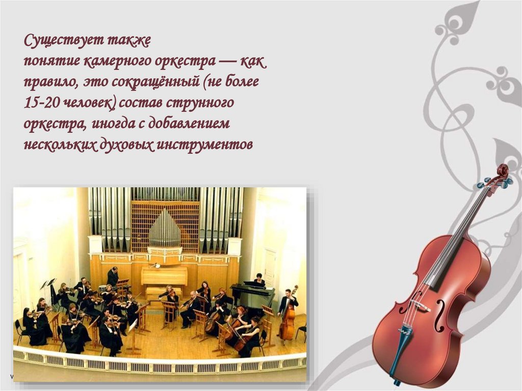 Существует такжепонятие камерного оркестра — как