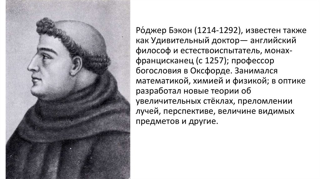 Ро́джер Бэкон (1214-1292), известен такжекак Удивительный доктор— английский