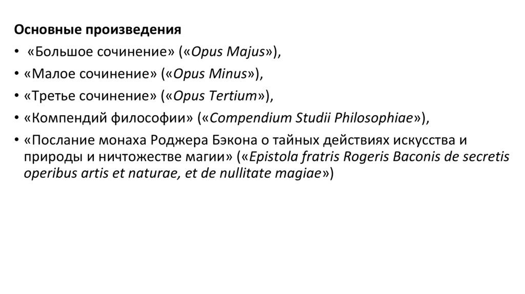 Основные произведения• «Большое сочинение» («Opus Majus»),