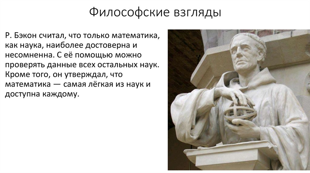 Философские взглядыР. Бэкон считал, что только математика,
