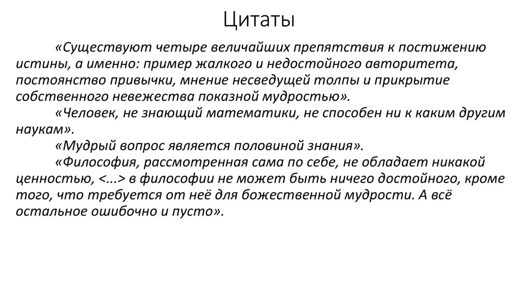 Цитаты«Существуют четыре величайших препятствия к постижению