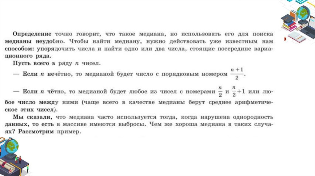 посвятим урок еще одной статистическойхарактеристике – медиане.