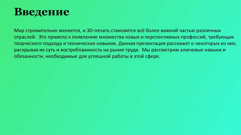 ВведениеМир стремительно меняется, и 3D-печать становится всё более важной частью различных