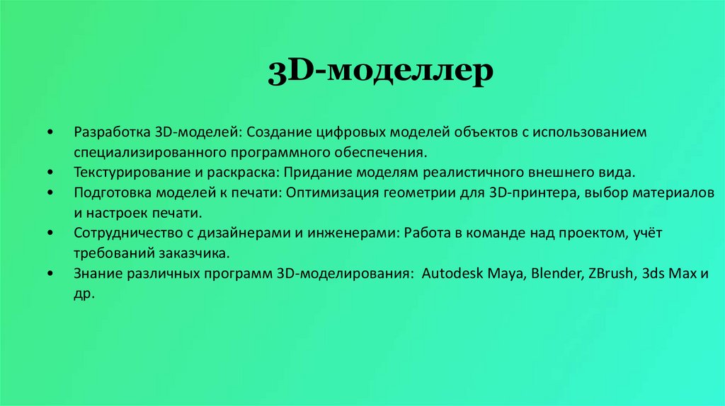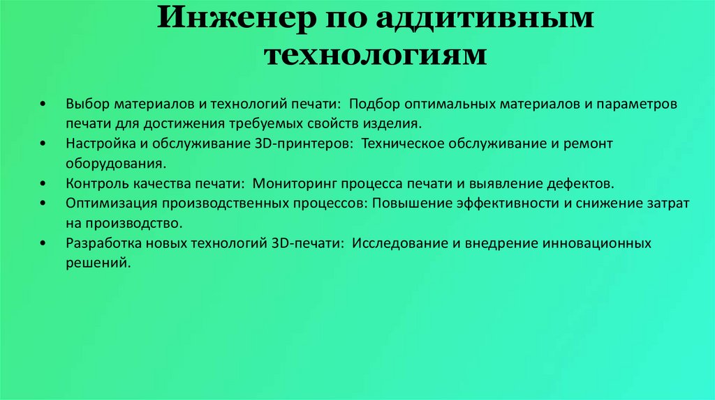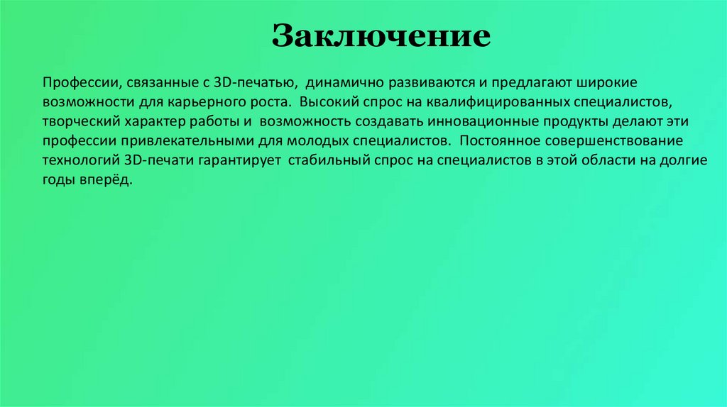 ЗаключениеПрофессии, связанные с 3D-печатью, динамично развиваются и предлагают широкие