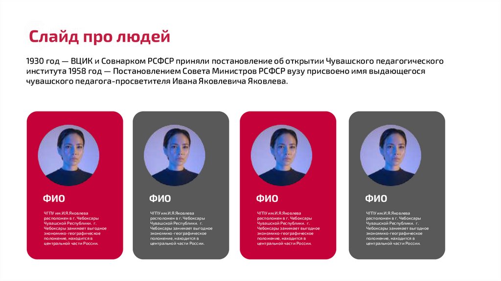 Слайд про людей1930 год — ВЦИК и Совнарком РСФСР приняли постановление об открытии Чувашского педагогического