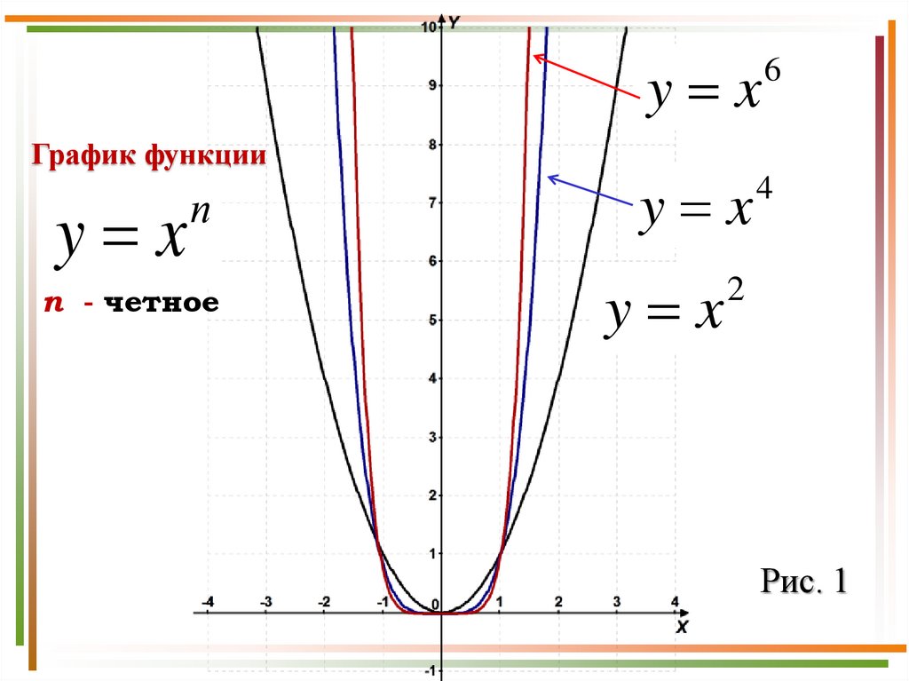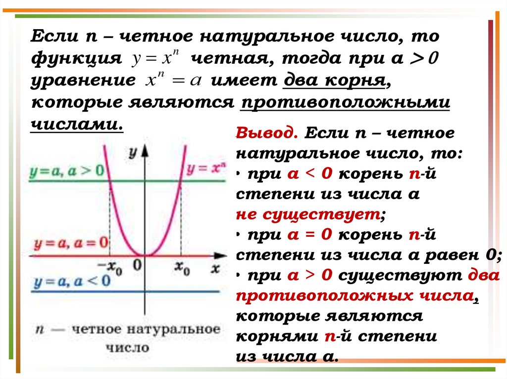 Если n – четное натуральное число, тофункция y x n четная, тогда при а > 0