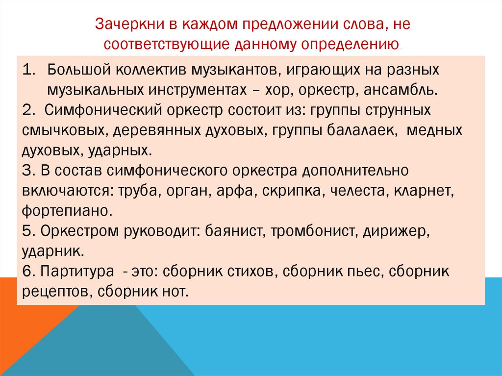 Зачеркни в каждом предложении слова, несоответствующие данному определению.