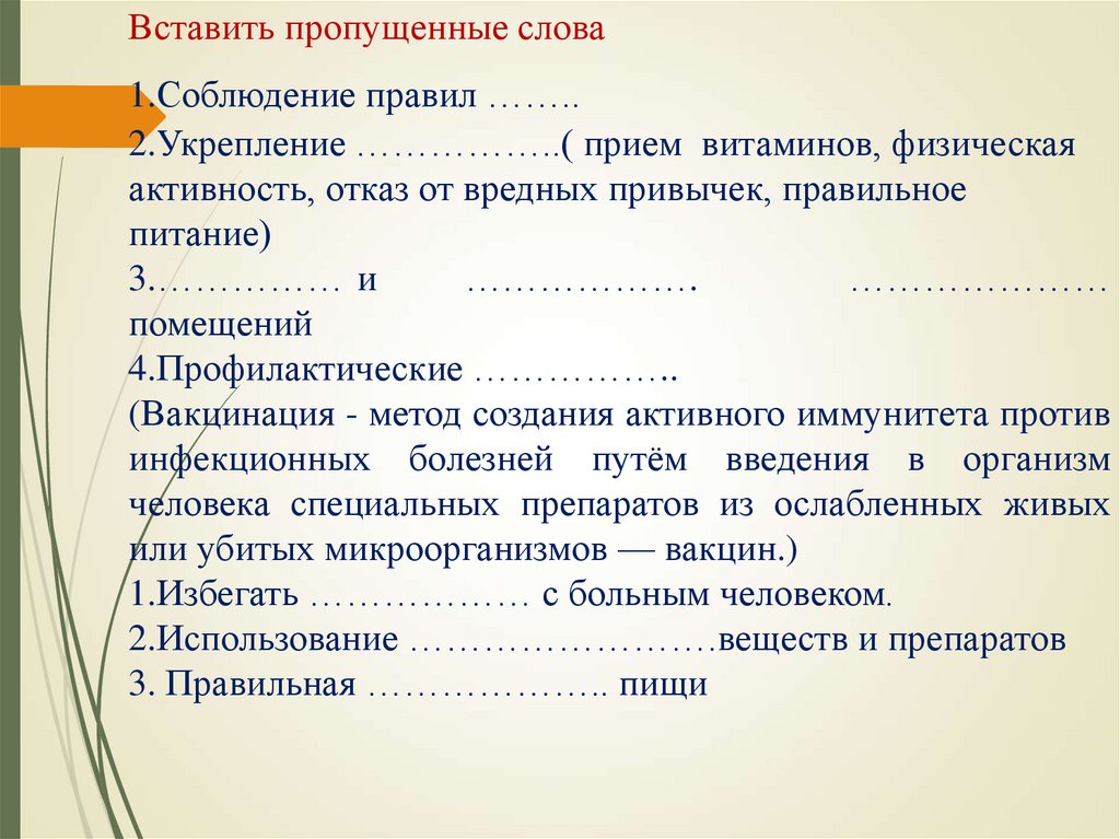 2.Укрепление ……………..( прием витаминов, физическая