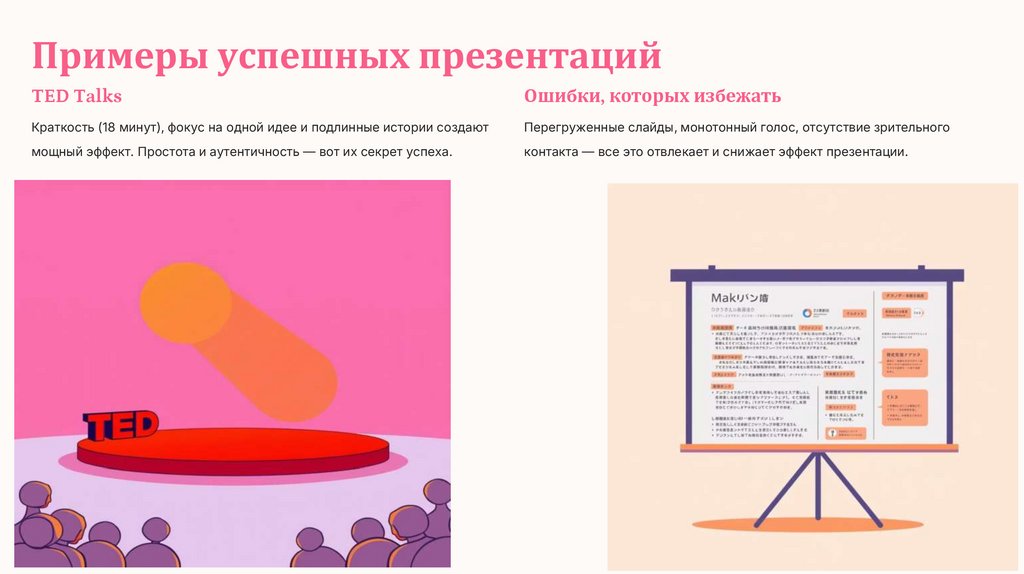 Перегруженные слайды, монотонный голос, отсутствие зрительного