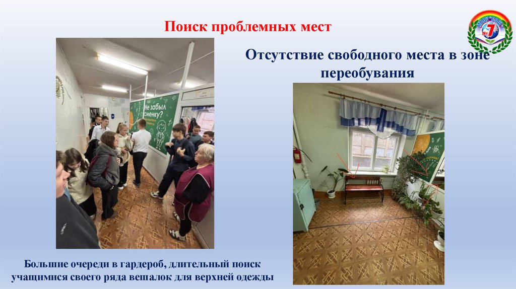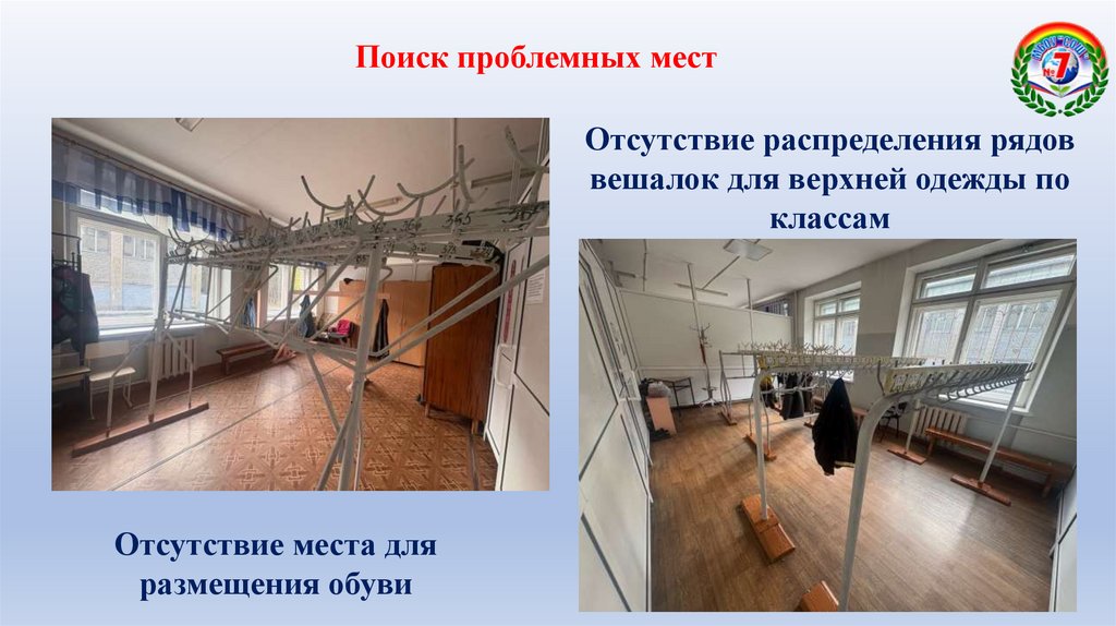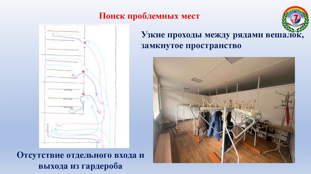 Поиск проблемных местУзкие проходы между рядами вешалок,