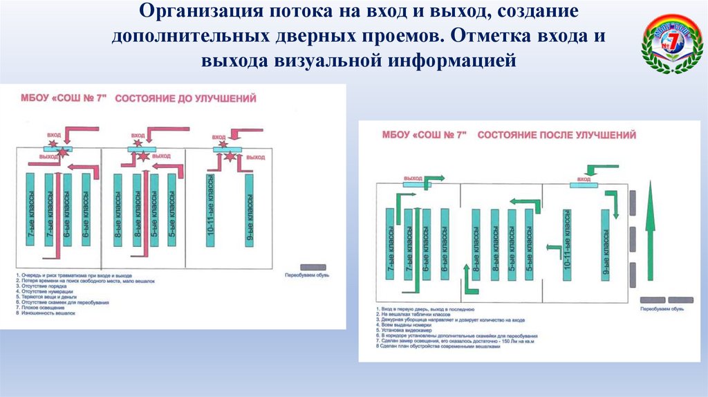 Организация потока на вход и выход, созданиедополнительных дверных проемов. Отметка входа и