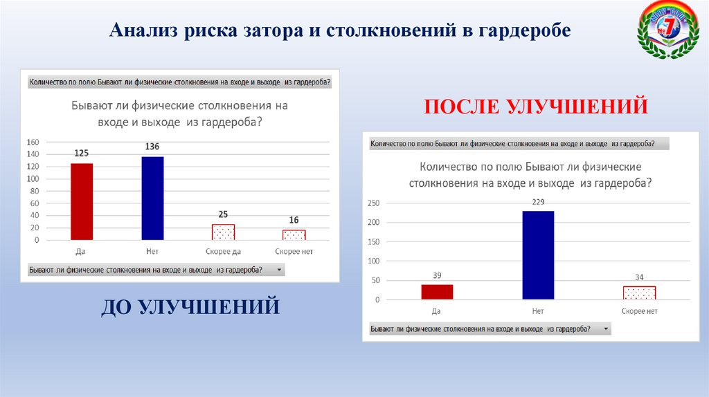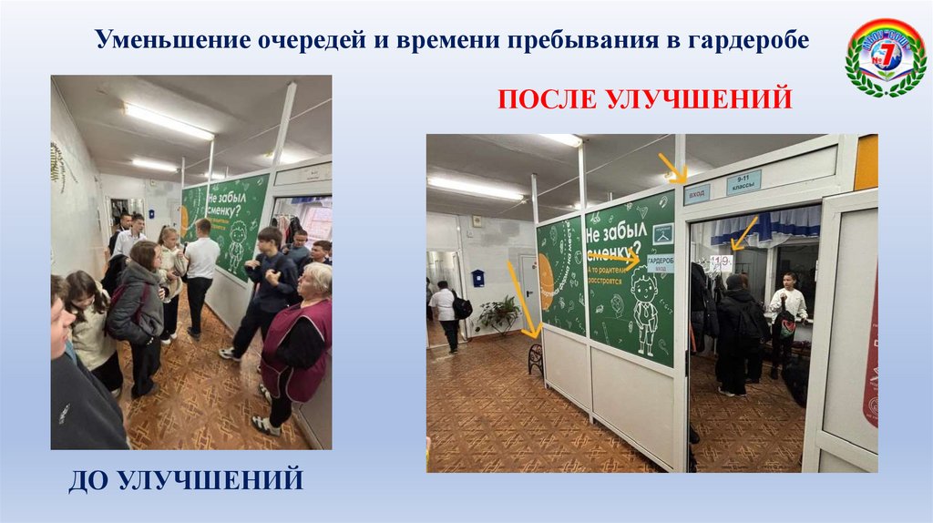 Уменьшение очередей и времени пребывания в гардеробеПОСЛЕ УЛУЧШЕНИЙ