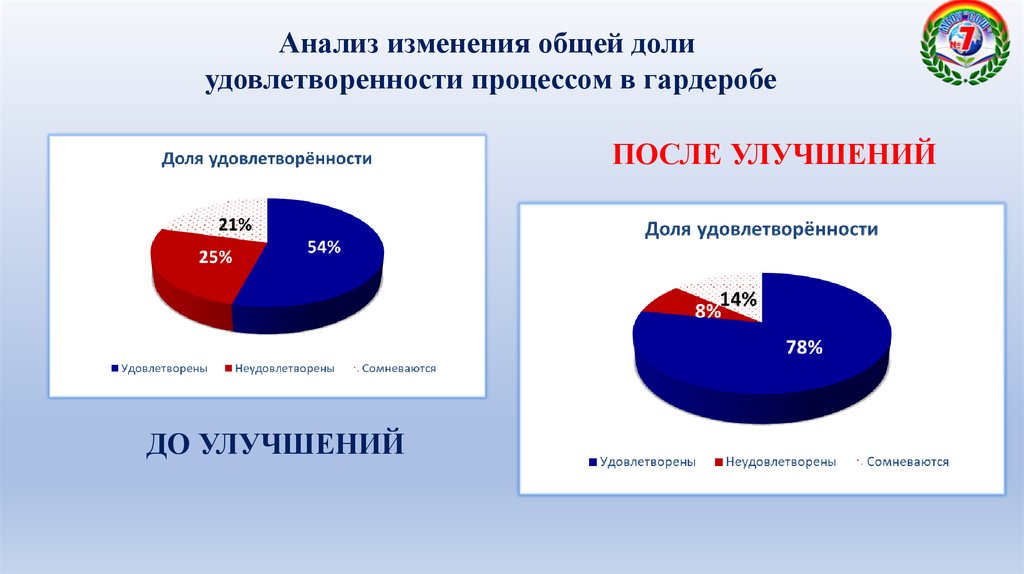 Анализ изменения общей долиудовлетворенности процессом в гардеробе