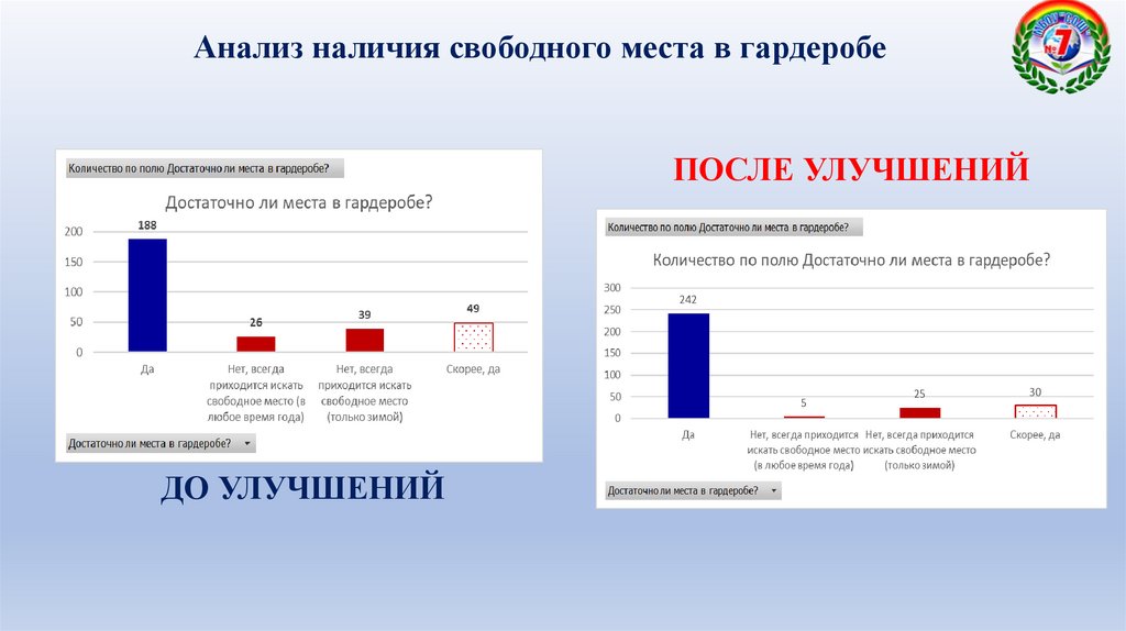 Анализ наличия свободного места в гардеробеПОСЛЕ УЛУЧШЕНИЙ