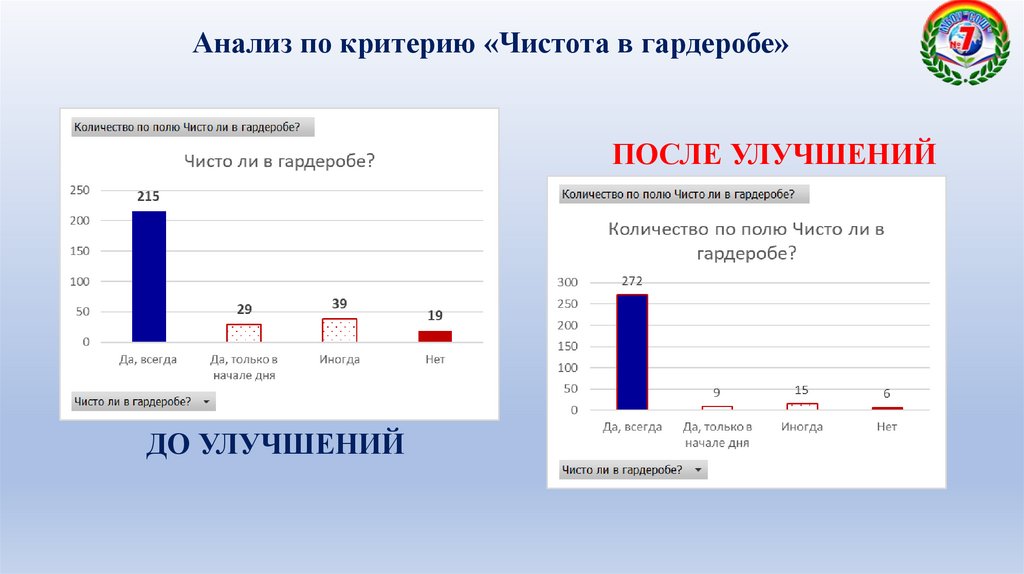 Анализ по критерию «Чистота в гардеробе»ПОСЛЕ УЛУЧШЕНИЙ