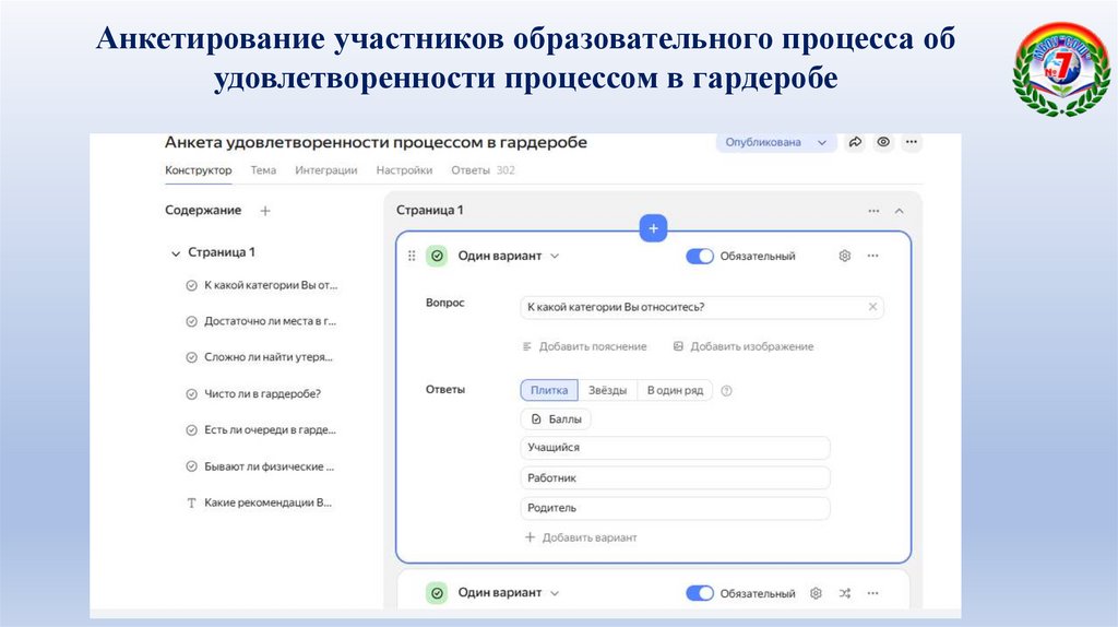 Анкетирование участников образовательного процесса обудовлетворенности процессом в гардеробе