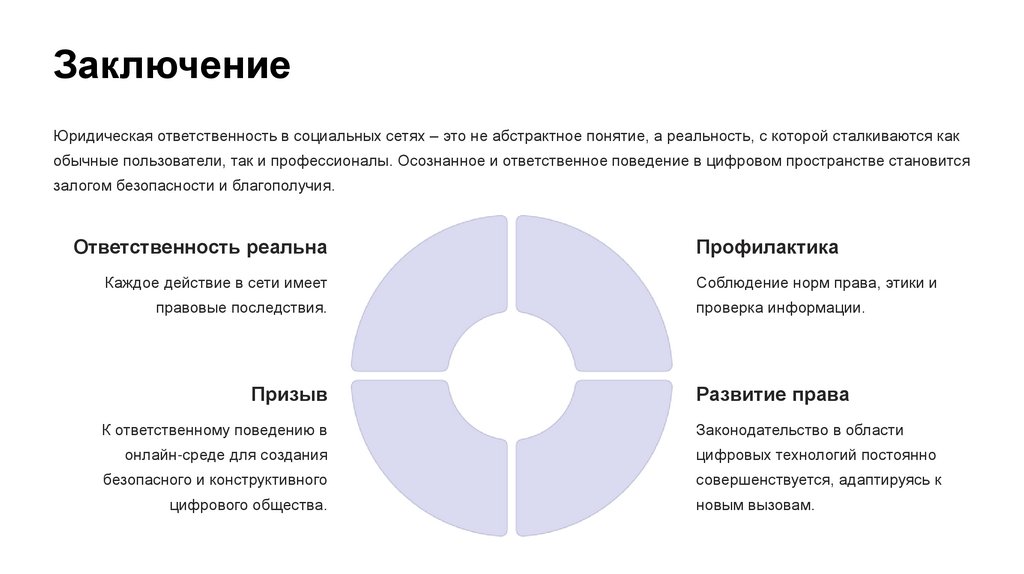 ЗаключениеЮридическая ответственность в социальных сетях – это не абстрактное понятие, а реальность, с которой сталкиваются как