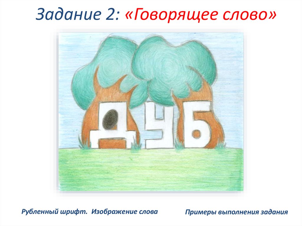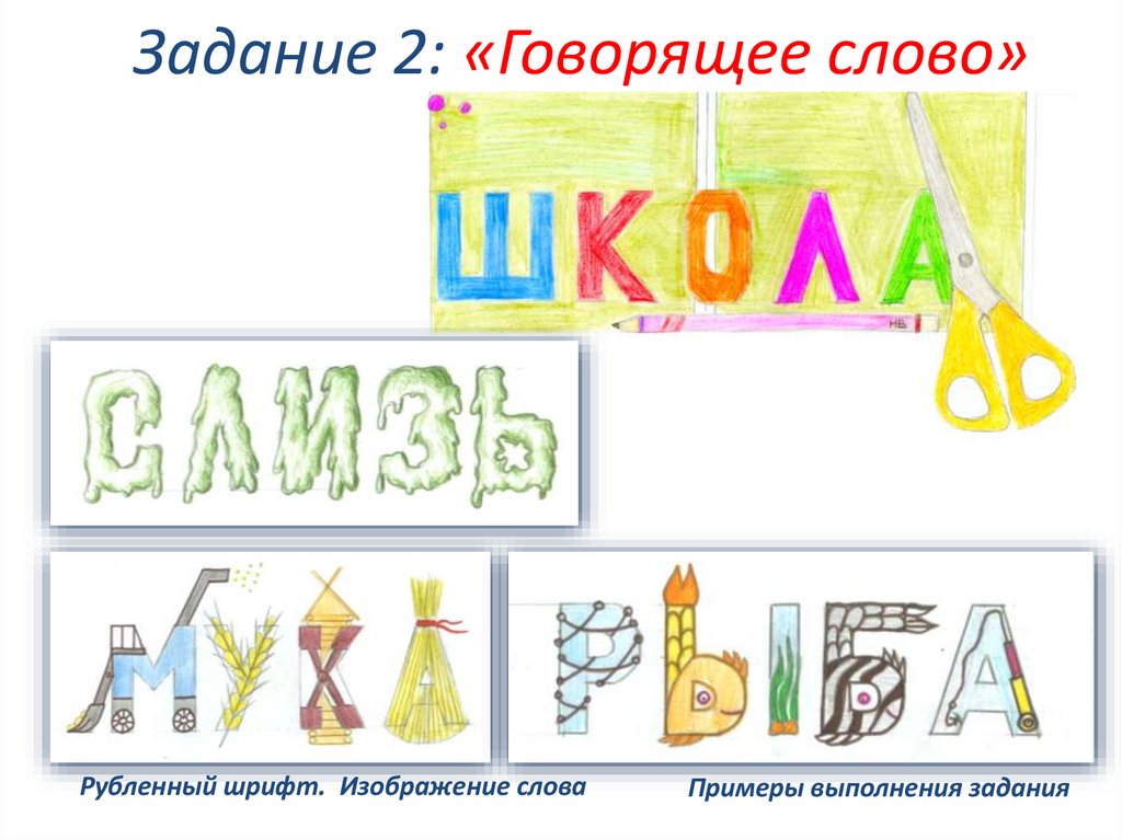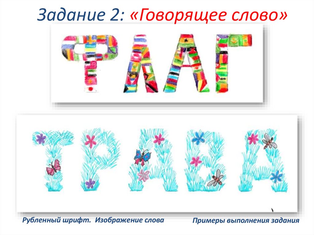 Задание 2: «Говорящее слово»Рубленный шрифт. Изображение слова