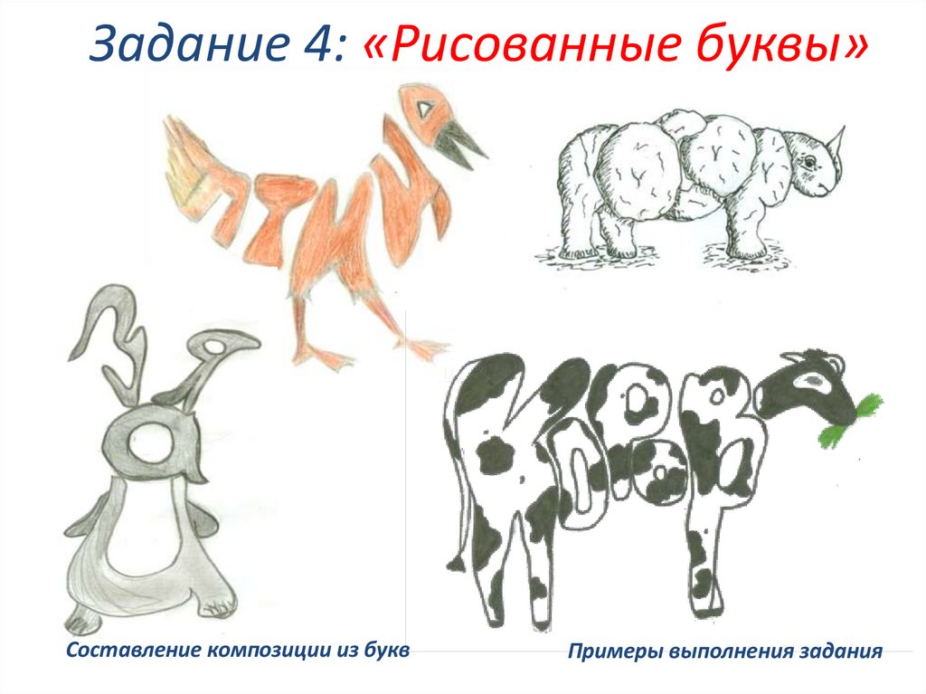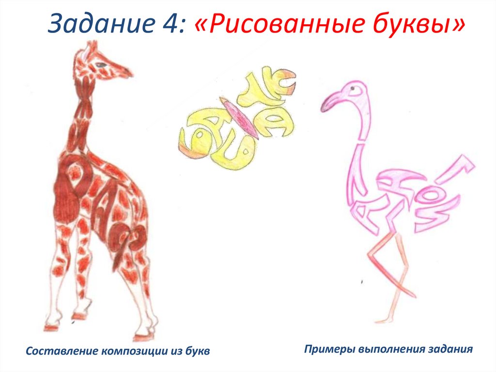 Задание 4: «Рисованные буквы»Составление композиции из букв