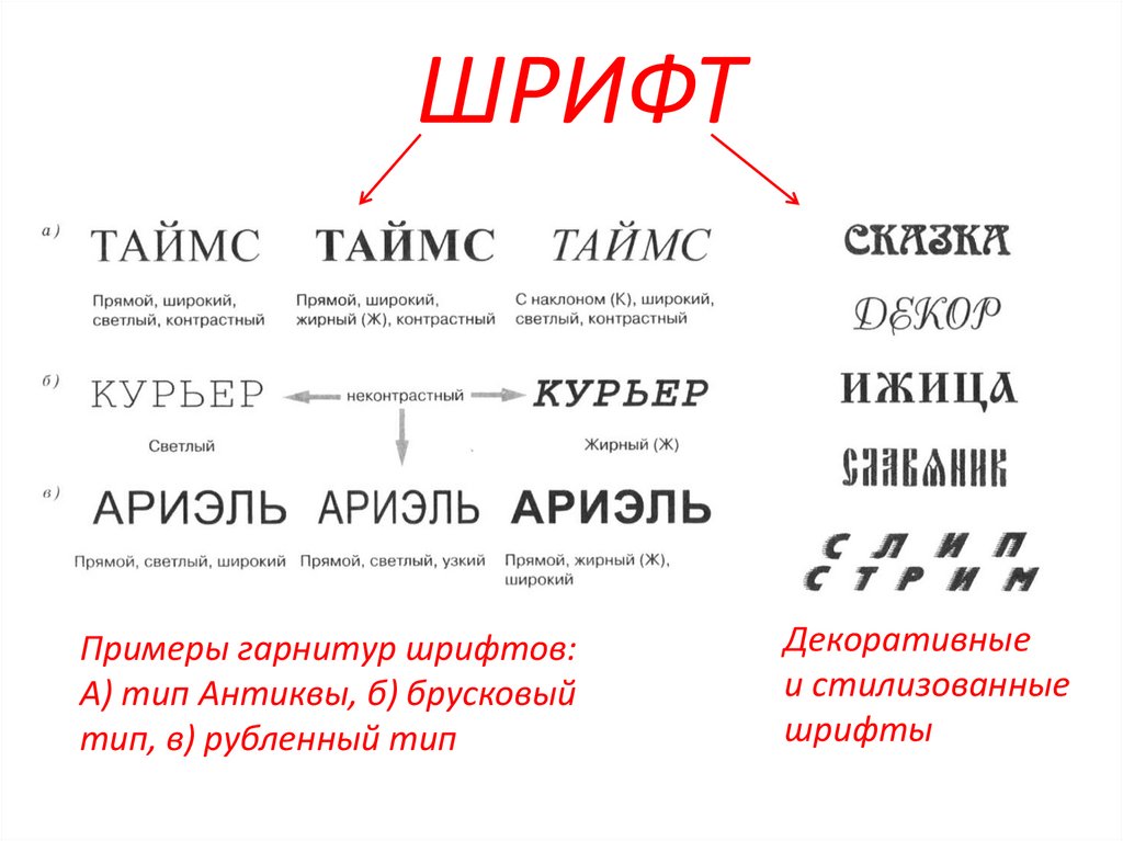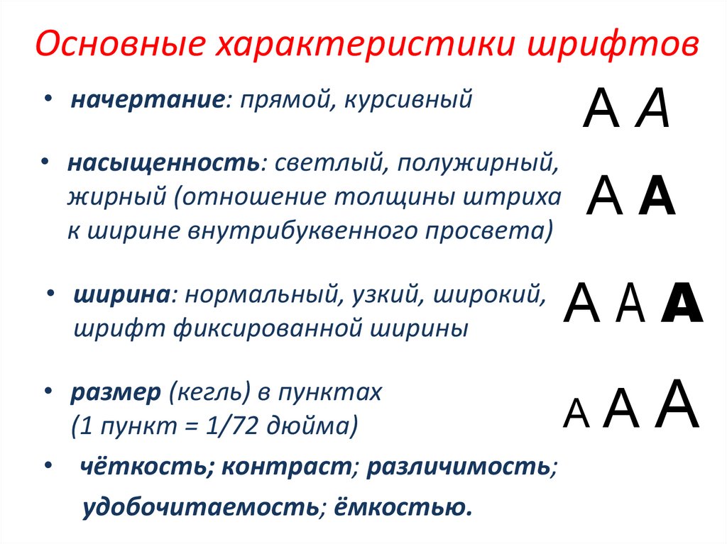 Основные характеристики шрифтов• начертание: прямой, курсивный