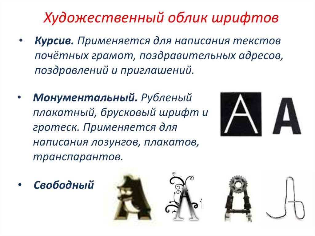 Художественный облик шрифтов• Курсив. Применяется для написания текстов