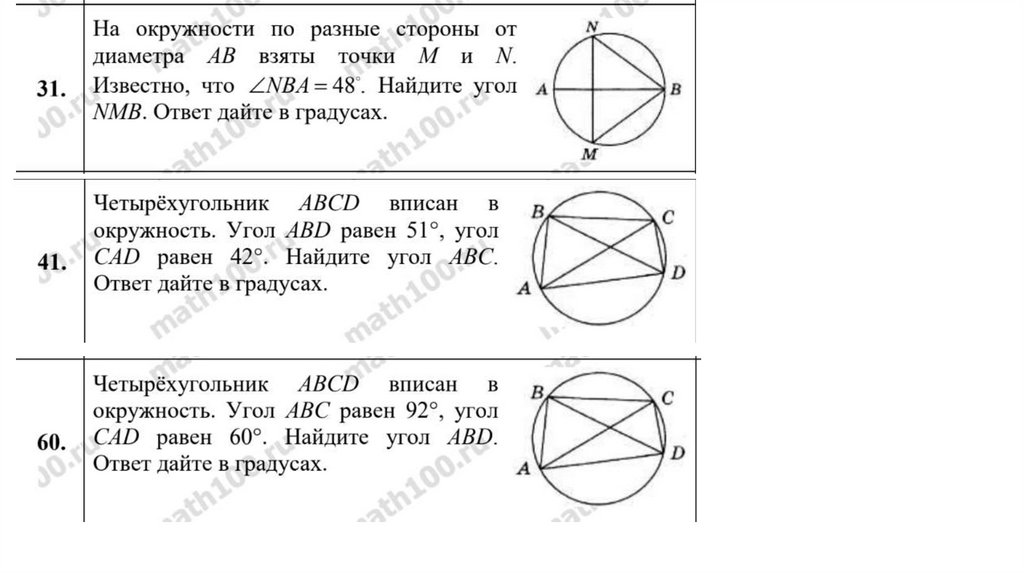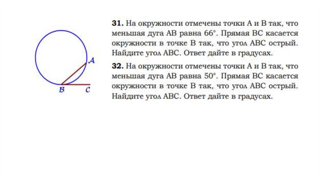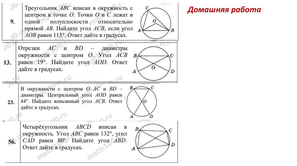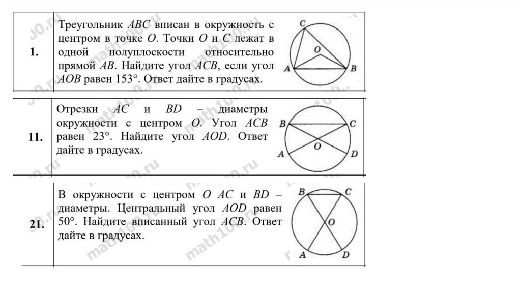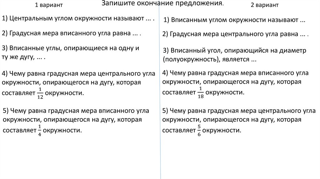 4) Чему равна градусная мера центрального угла 4) Чему равна градусная мера вписанного угла