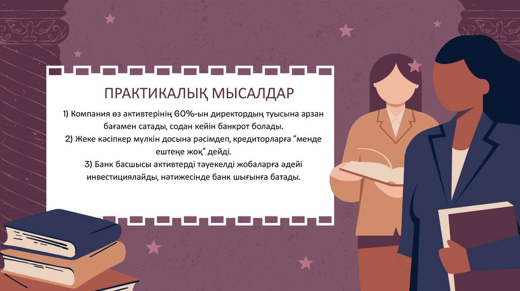 ПРАКТИКАЛЫҚ МЫСАЛДАР1) Компания өз активтерінің 60%-ын директордың туысына арзан