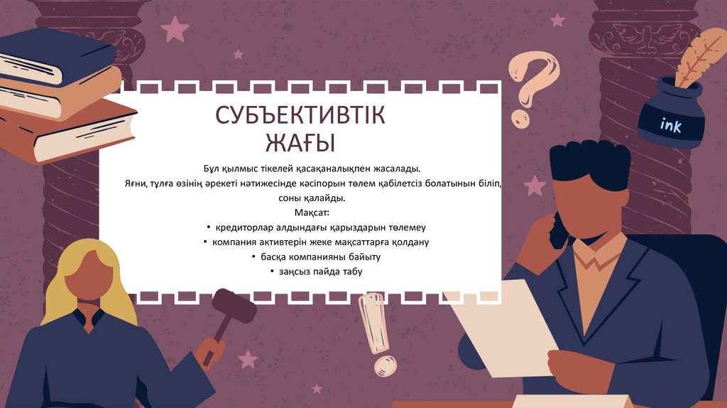 Яғни, тұлға өзінің әрекеті нәтижесінде кәсіпорын төлем қабілетсіз болатынын біліп,