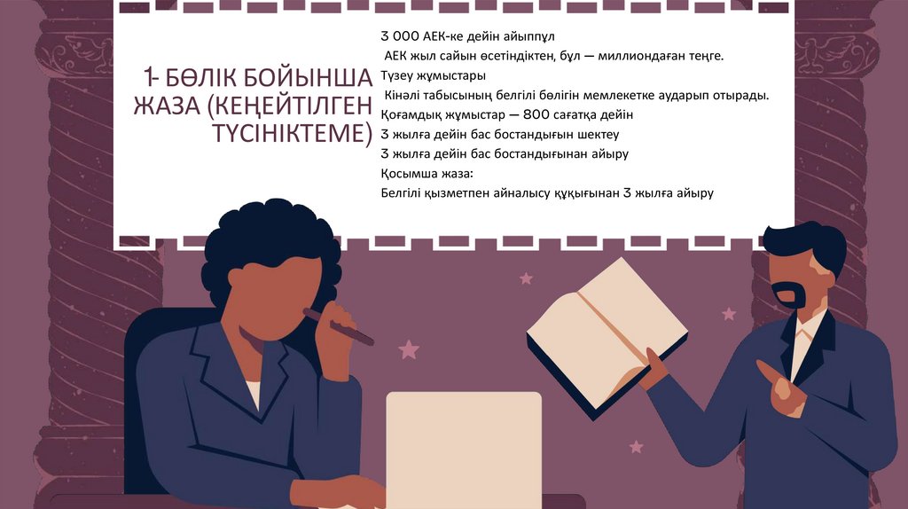 • Сол жаза түрлері (айыппұл, қоғамдық жұмыс, бостандығынан айыру — 3 жылға