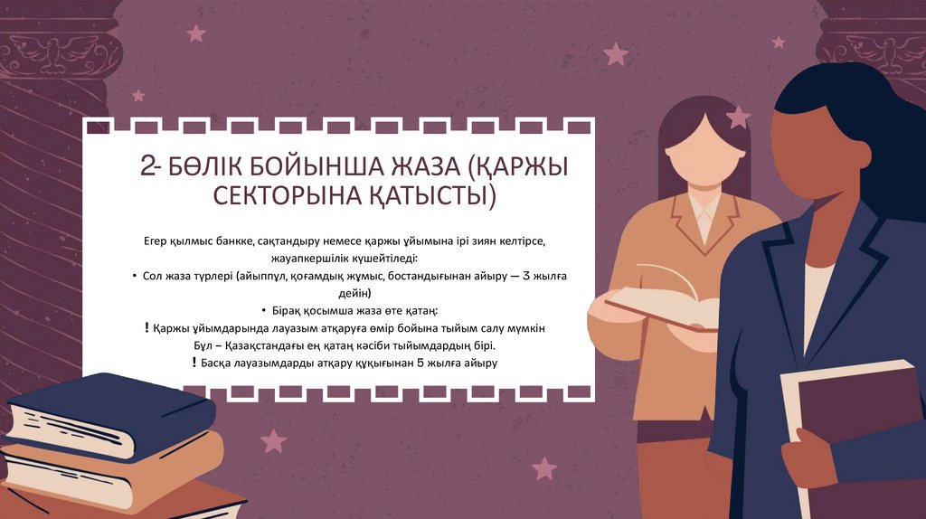 2-БӨЛІК БОЙЫНША ЖАЗА (ҚАРЖЫСЕКТОРЫНА ҚАТЫСТЫ)
