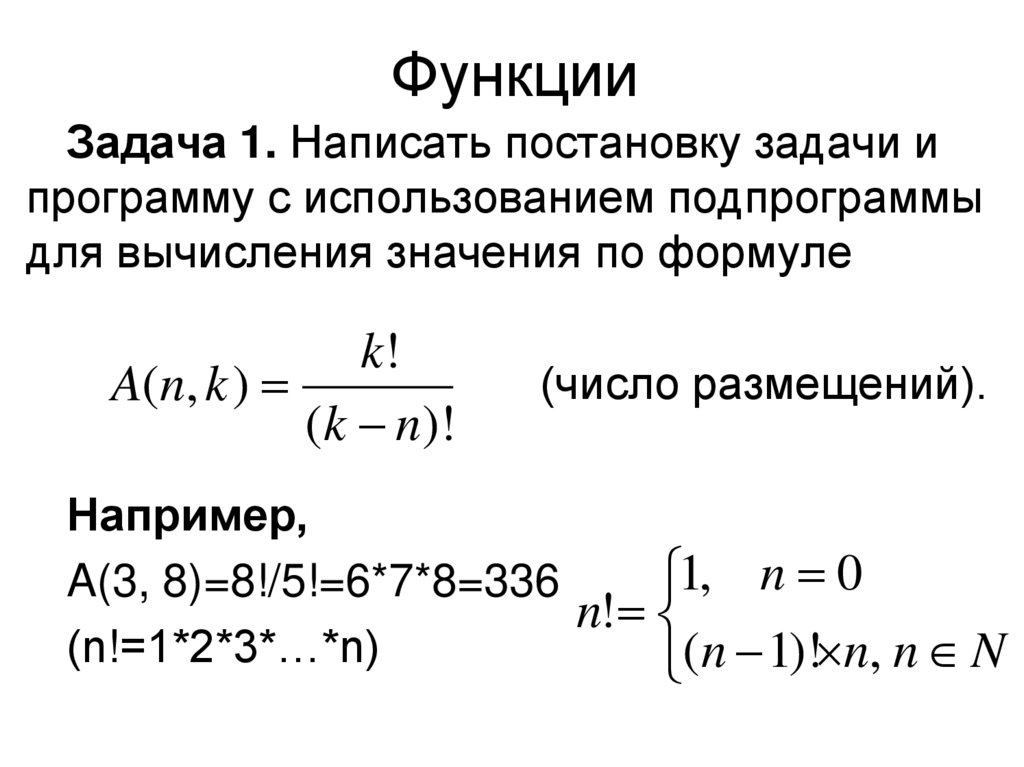 Задача 1. Написать постановку задачи ипрограмму с использованием подпрограммы