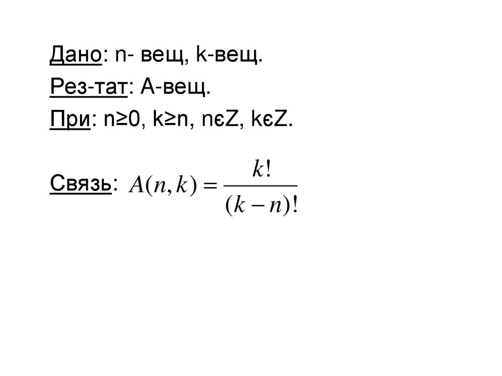 Дано: n- вещ, k-вещ.Рез-тат: A-вещ.